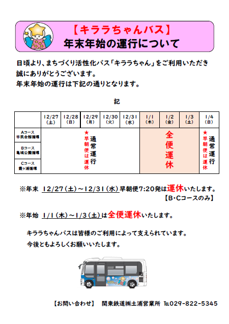 年末年始の運行について