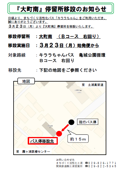 Bコース「大町南」停留所移設のお知らせ